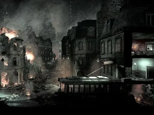 游戏采用独特的手绘黑白灰美术风格,仅用少量色彩点缀关键物品。残破的建筑、萧瑟的街道、昏暗的灯光、角色麻木的表情,共同构建了一个满目疮痍、绝望压抑的战争世界。搭配空灵而悲伤的配乐与环境音效,让你从视觉到听觉,完全沉浸在这种令人窒息的末日氛围中。
