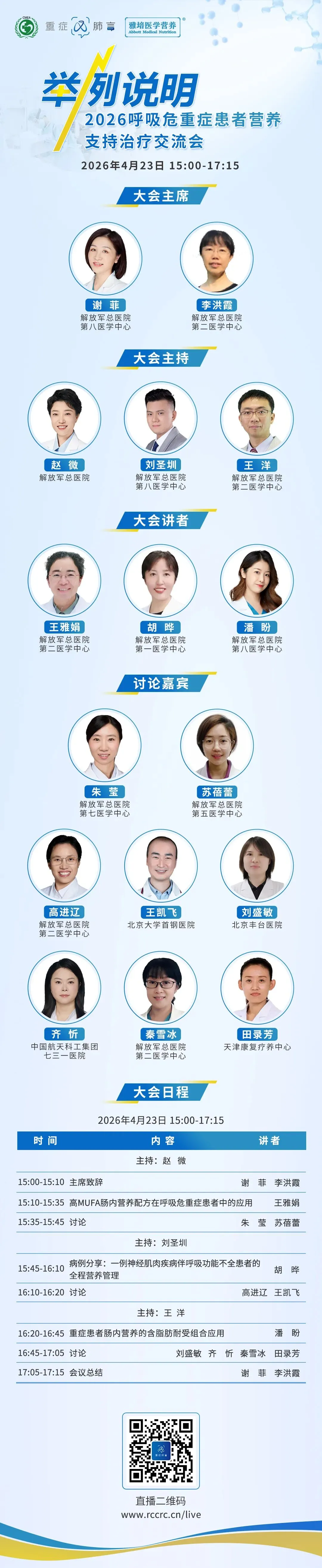 明日15:00直播 | 举例说明—呼吸危重症患者营养支持治疗交流会