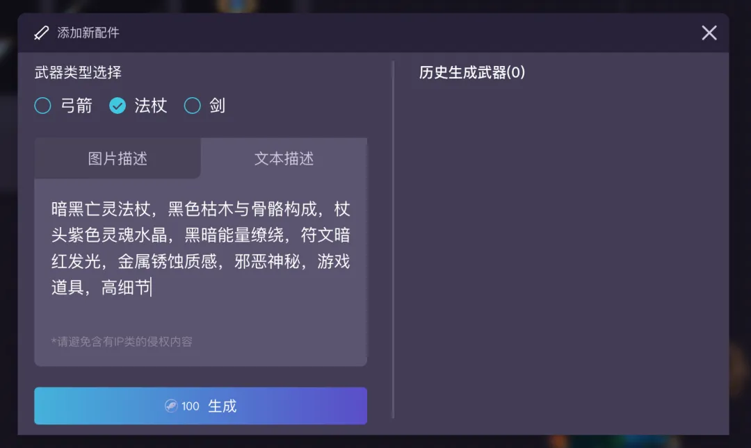 除了默认生成的武器,还能用AI继续生成新的武器