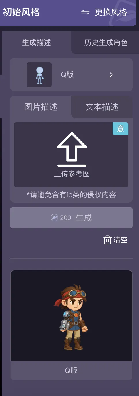而且支持生成各种风格的角色,支持文本生成和图片生成,还可以选择不同的风格和类型。不过目前整体都还是人物的造型,后续迭代出更加丰富的类型那将更大的满足用户需求。