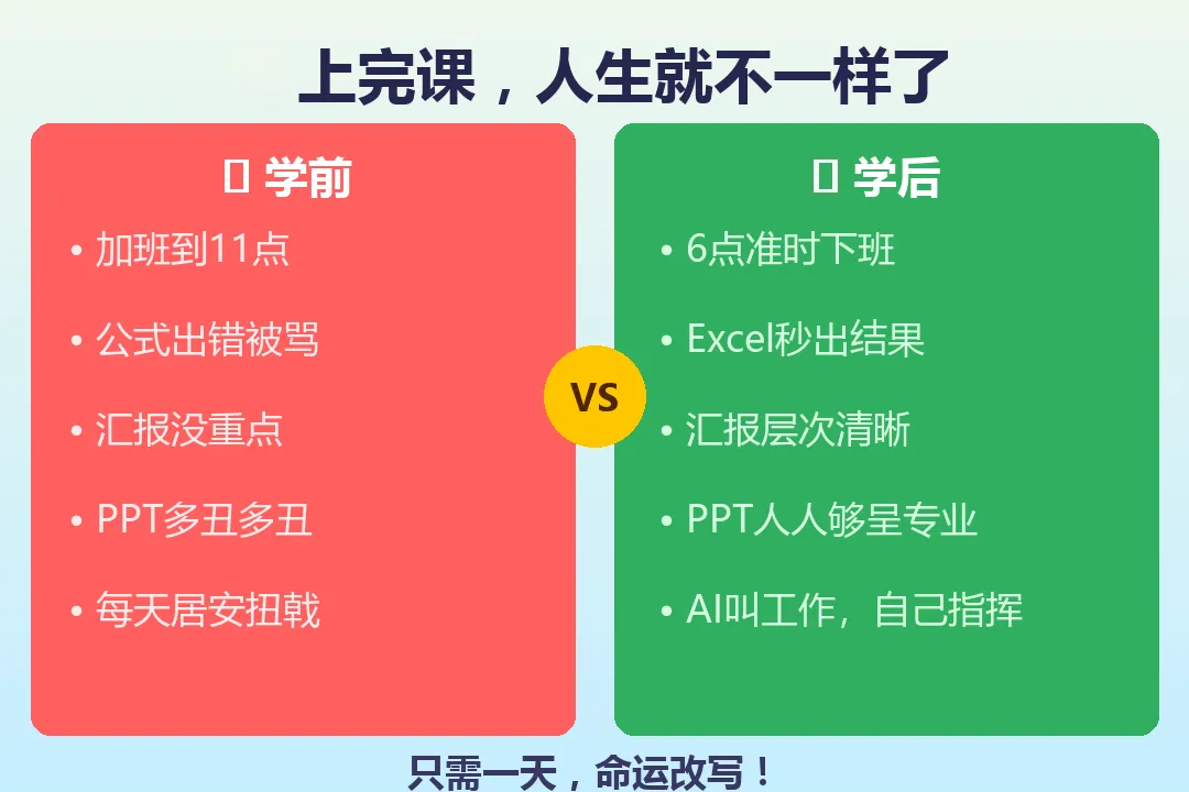一天学会AI工具演练+认知提升+交付清单!打造从零起步的AI+全职业友好课堂不加班、不掉链子,同事都叫你大神——名额有限,速来锁定!