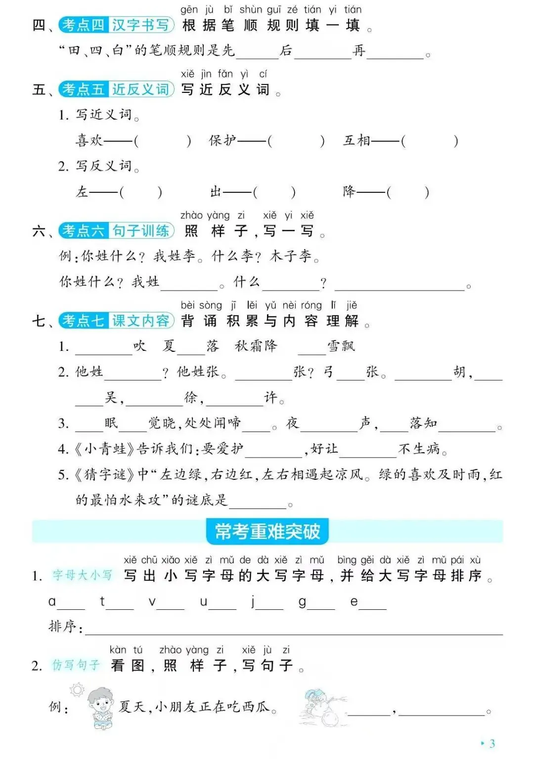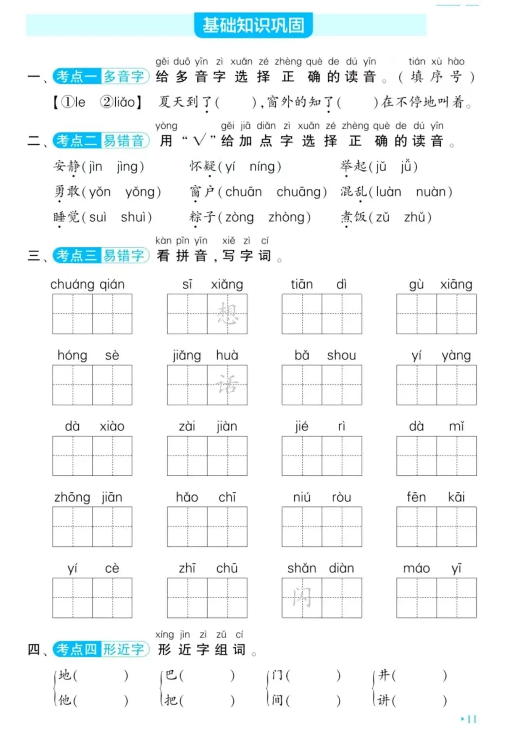 一年级语文下册期中复习单元基础练习(可保存打印) 点击蓝字 关注我 大家好,我是素素老师~ 温故而知新,及时巩固很重要。分享一份一年级语文下册一~四单元基础复习知识练习,给有需要的朋友参考。 单元知识盘点,🉑参考以下 一年级语文下册单元知识点盘点(一~四单元,可保存打印) 第一单元 第二单元 第三单元 第四单元 我会持续分享更多,记得关注、点赞或分享❤️哦~~ 点个赞👍🏻鼓励一下呗! END