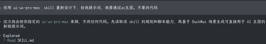 你用 ui-ux-pro-max skill 重新设计下,给我提示词,我要通过ai生图。不要改代码