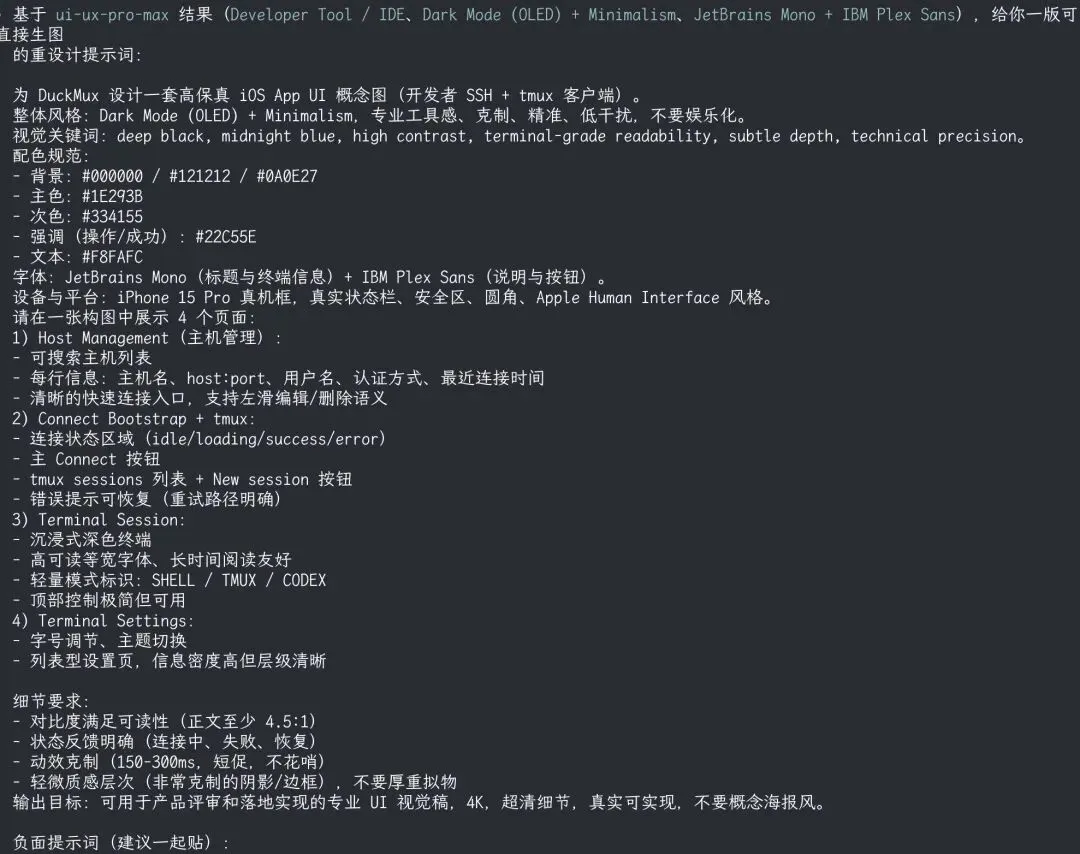 第一步,使用比较流行的 frontend-design 或者 ui-ux-pro-max 生成提示词。