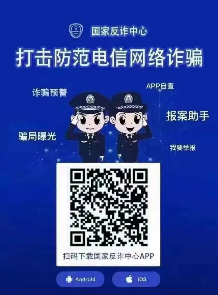 “国家反诈中心”APP是公安部研发的一款集诈骗举报、诈骗预警、身份验证、风险查询、骗局曝光等功能于一体的手机软件,具有高效、安全、及时等特点。推广使用“国家反诈中心”APP,是当前形势下快速遏制电信网络诈骗犯罪的有效手段。在此,呼吁广大人民群众,迅速安装“国家反诈中心”APP,筑牢全民反诈防护墙,共同守护您的“钱袋子”。