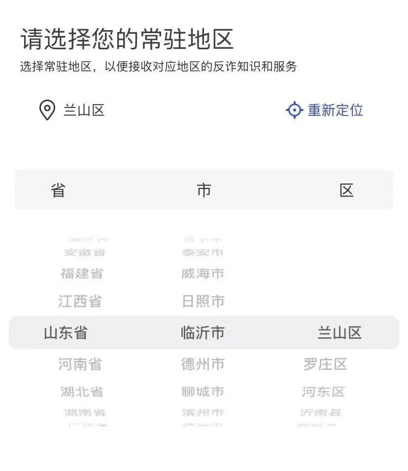 选择常驻地区