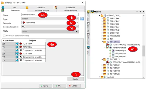 第三步, 展开Models 中的Properties属性体并找到刚转换过来的六个主应力分量,选中其中一个属性如TOTSTRXX并点击Settings,弹出TOTSTRXX设置窗口。
