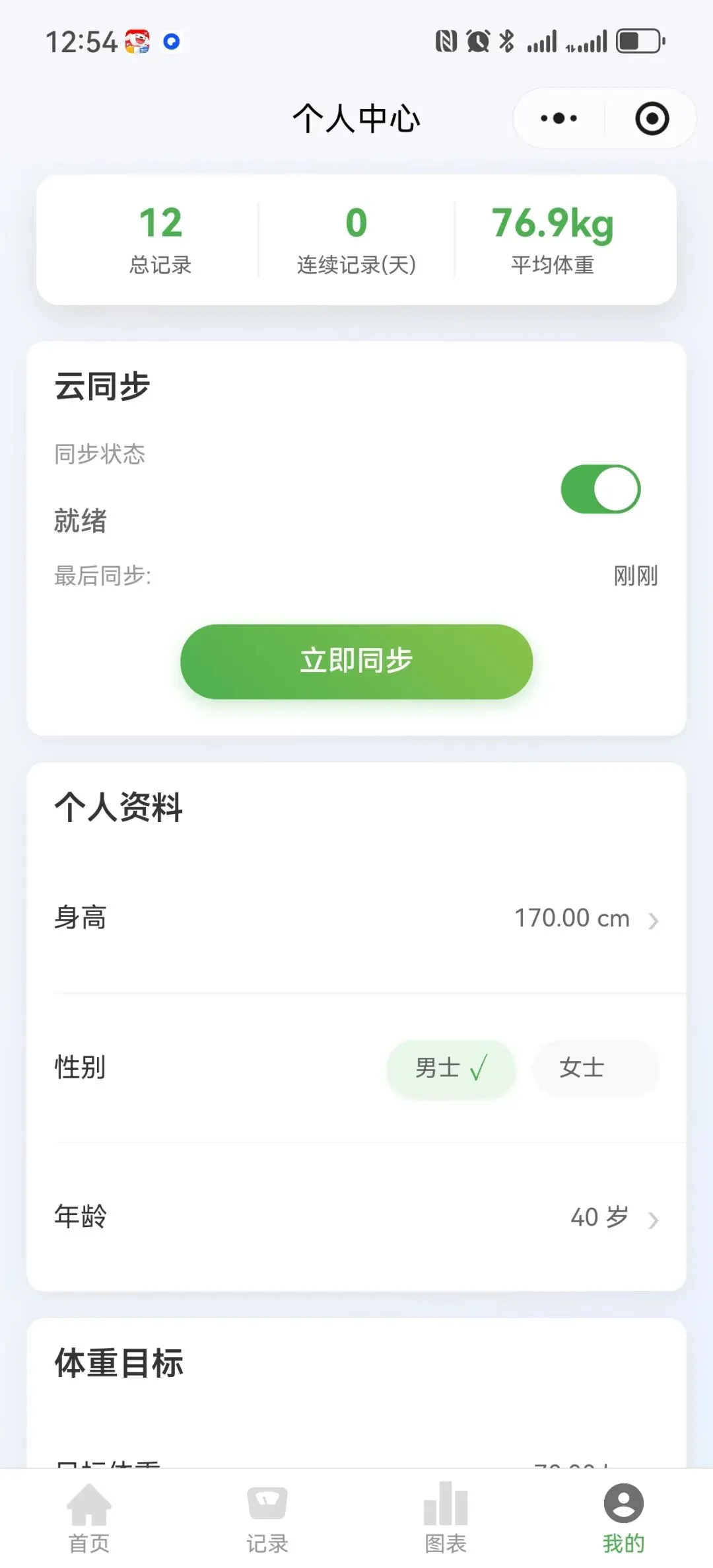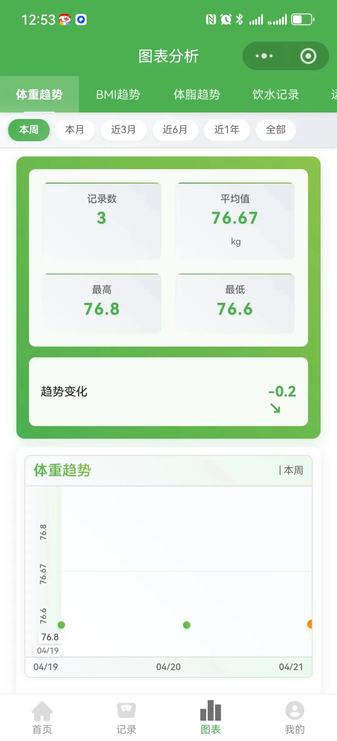 体重记录:记录每日体重,自动计算BMI和体脂率 -