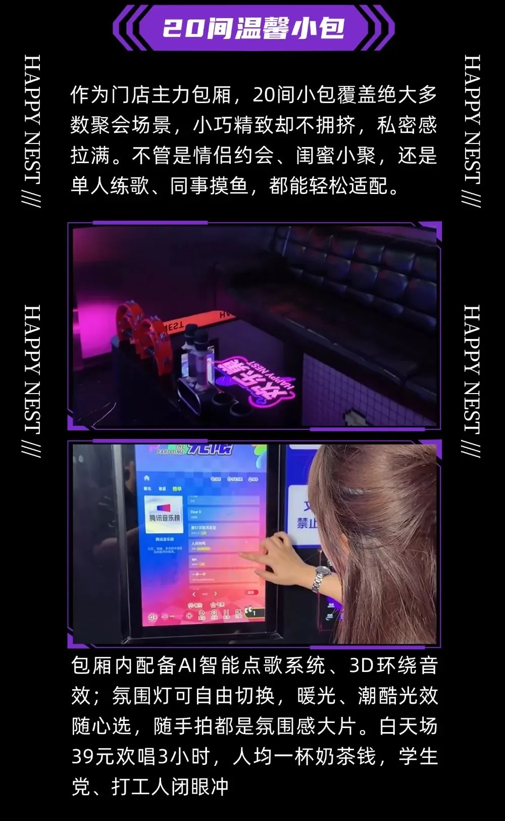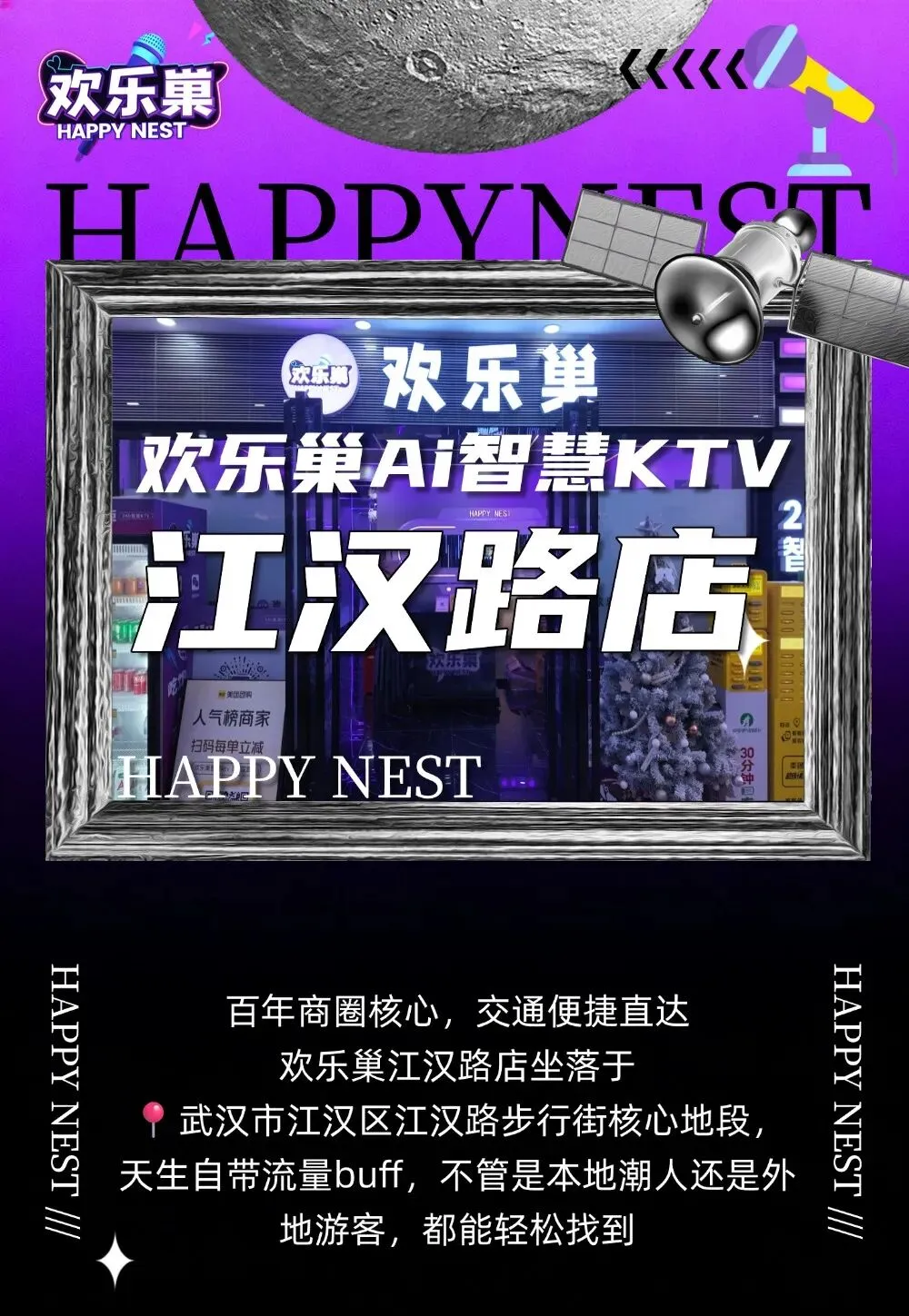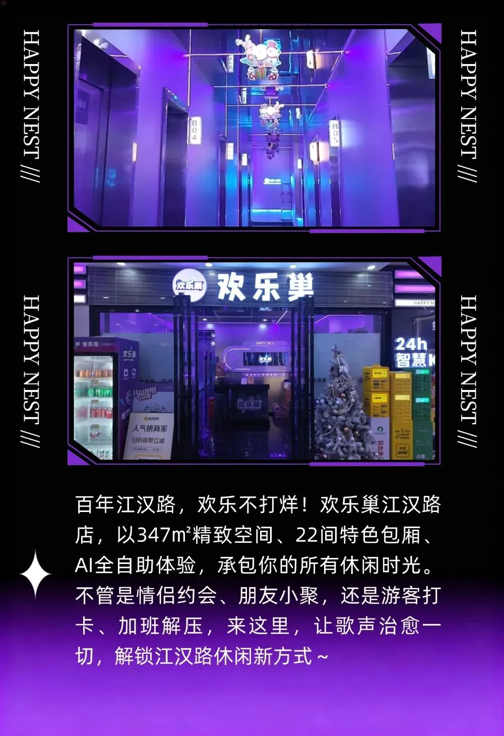 江汉路K歌地标 | 欢乐巢AI自助KTV,22间包厢承包你的休闲时光