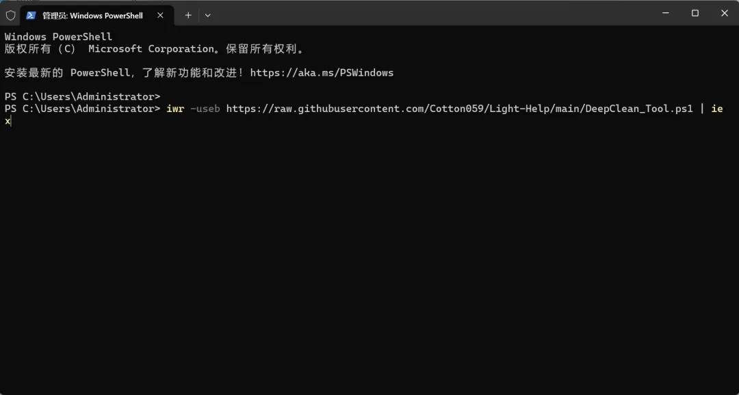 iwr -useb https://raw.githubusercontent.com/Cotton059/Light-Help/main/DeepClean_Tool.ps1 | iex