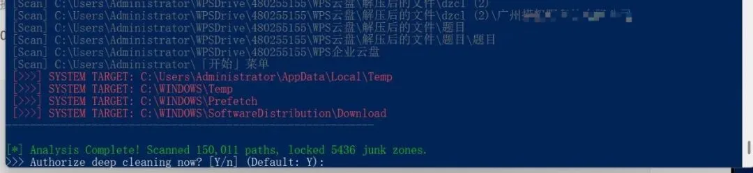 接着输入Y按下回车,即可开始自动清理。清理完成后会弹出详细清理报告,随后打开此电脑,对比磁盘清理前后空间变化,就能直观看到释放效果。