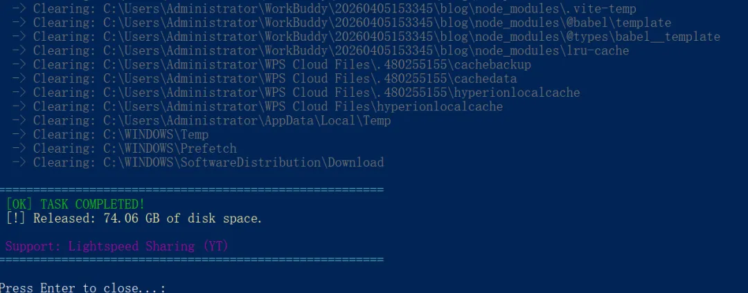 纯干货分享!一行代码无需安装任何软件,一键清理 C 盘冗余缓存,亲测好用不踩坑