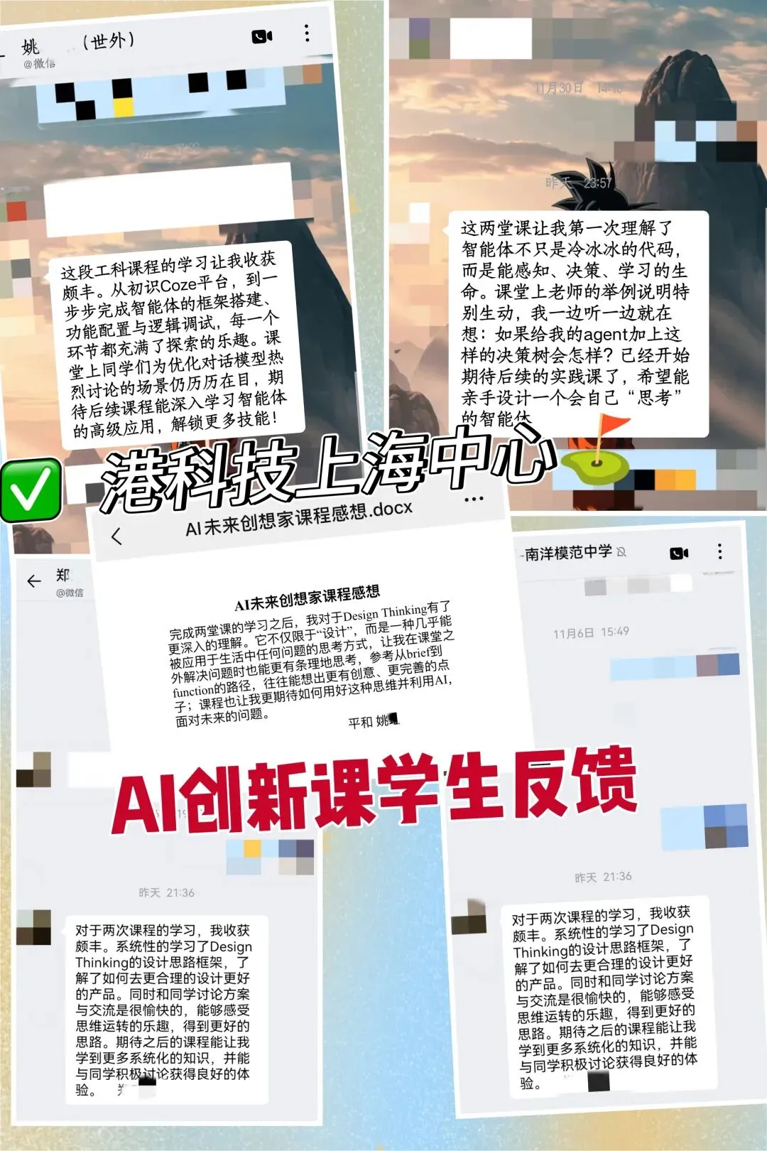 2025寒假期间港科技上海中心《AI创新课程》学生真实反馈如下: