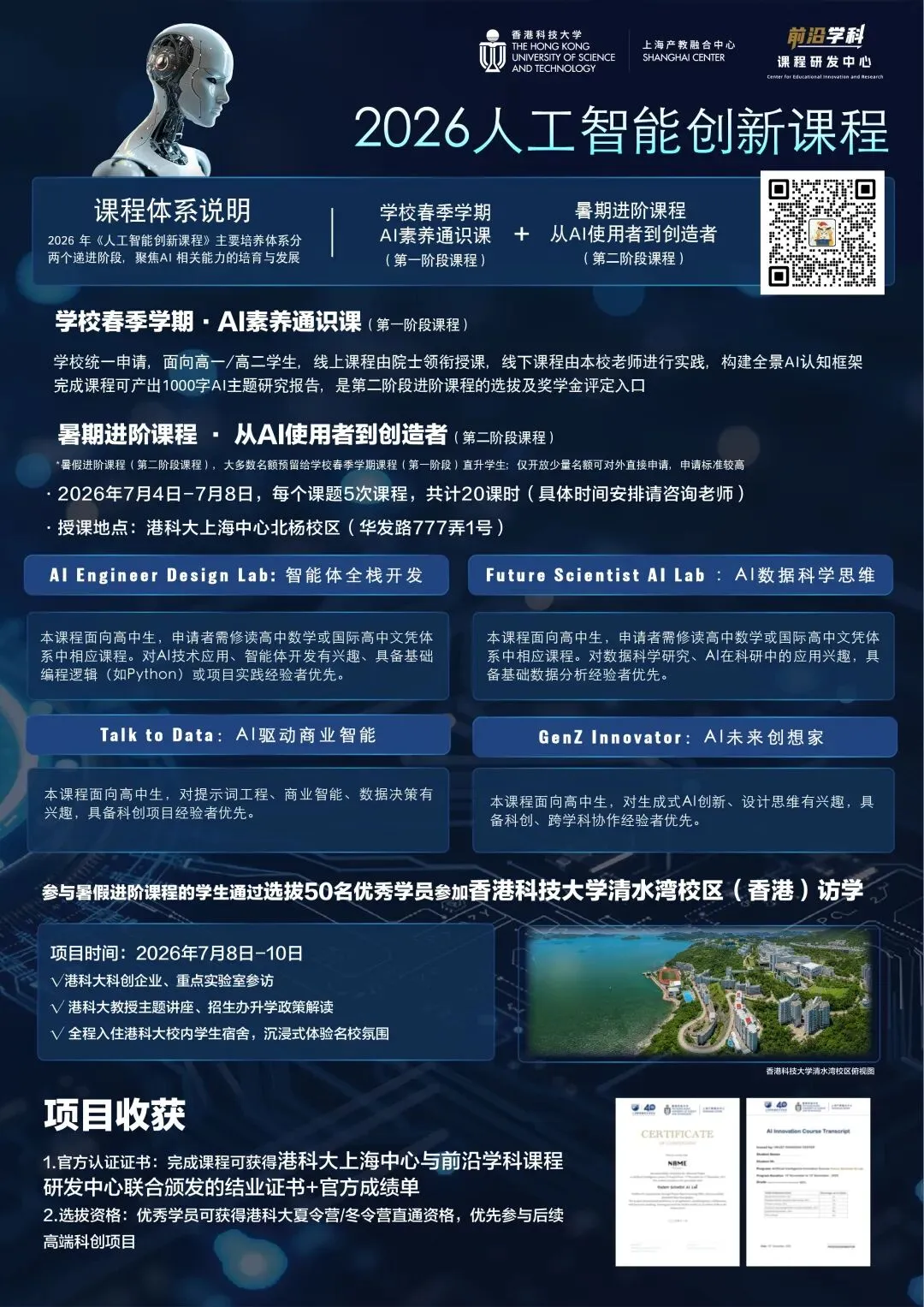 2026人工智能创新暑期课程正式开放报名,依托港科大资源打造,面向高中生提供系统化AI进阶路径。