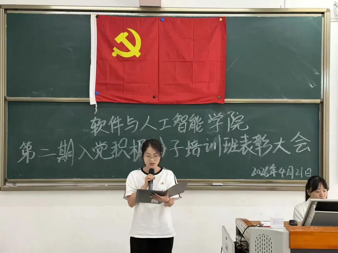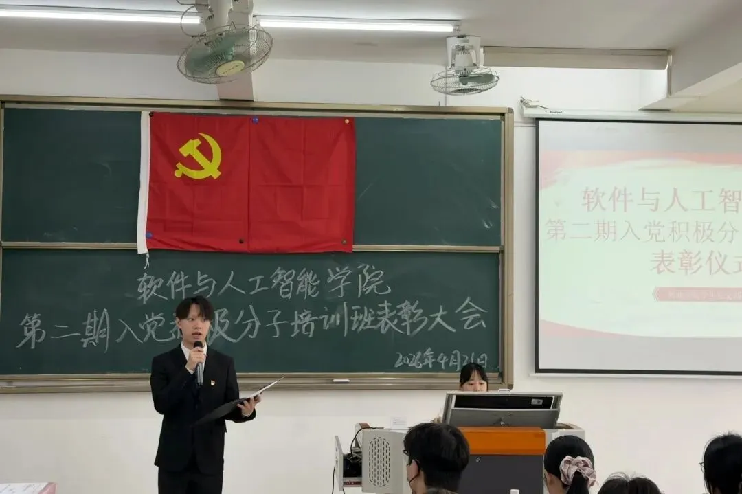 此次表彰大会既是对第二期入党积极分子培训班学习成果的一次全面总结,也是一次生动深刻的思想教育。今后,软件与人工智能学院将继续扎实推进入党积极分子培养教育工作,引导广大青年学子以先进为榜样,在青春奋斗中坚定信仰、锤炼品格、砥砺前行。