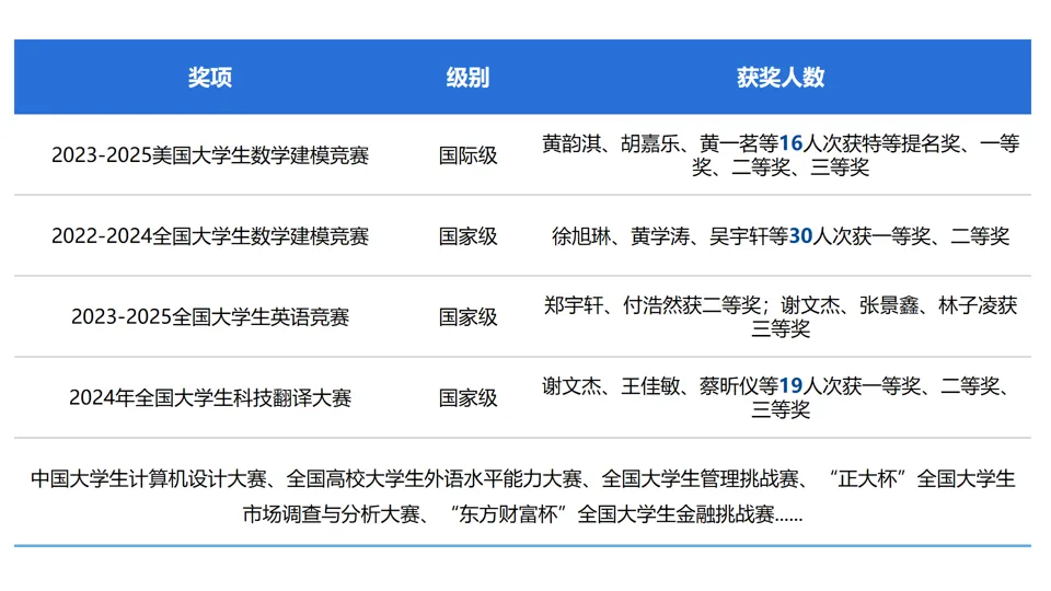 美国大学生数学建模竞赛、全国大学生英语竞赛、中国大学生计算机设计大赛、粤港澳大湾区杯金融数学建模竞赛……尽收囊中!