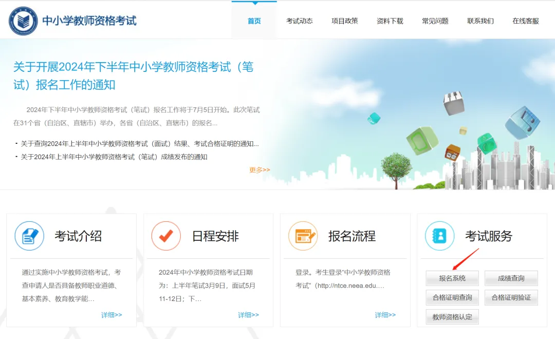 登录中小学教师资格考试网(http://ntce.neea.edu.cn/ )