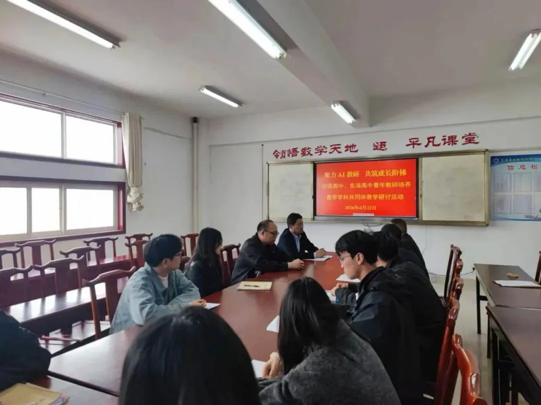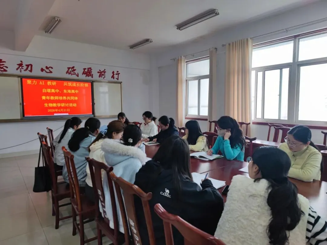 为深化人工智能技术与课堂教学的融合创新,助力青年教师专业成长,白塔高级中学积极联系东海高级中学,于4月21日开展了“聚力 AI 教研 共筑成长阶梯”教学研讨暨青年教师培养共同体活动。