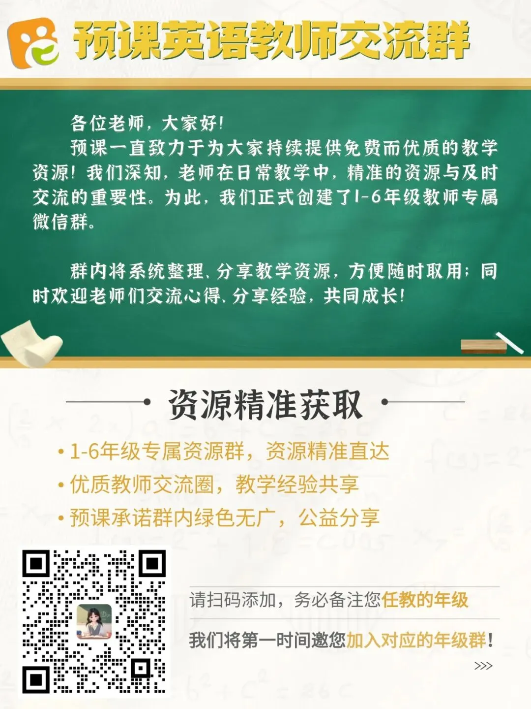 🙋「预课老师交流群」限时开放中,中小学课件/教案/说课稿/真题/政策解读 每日直送,打破地区教学资源差,和全国各地【沪教英语教材】老师一起交流分享经验~