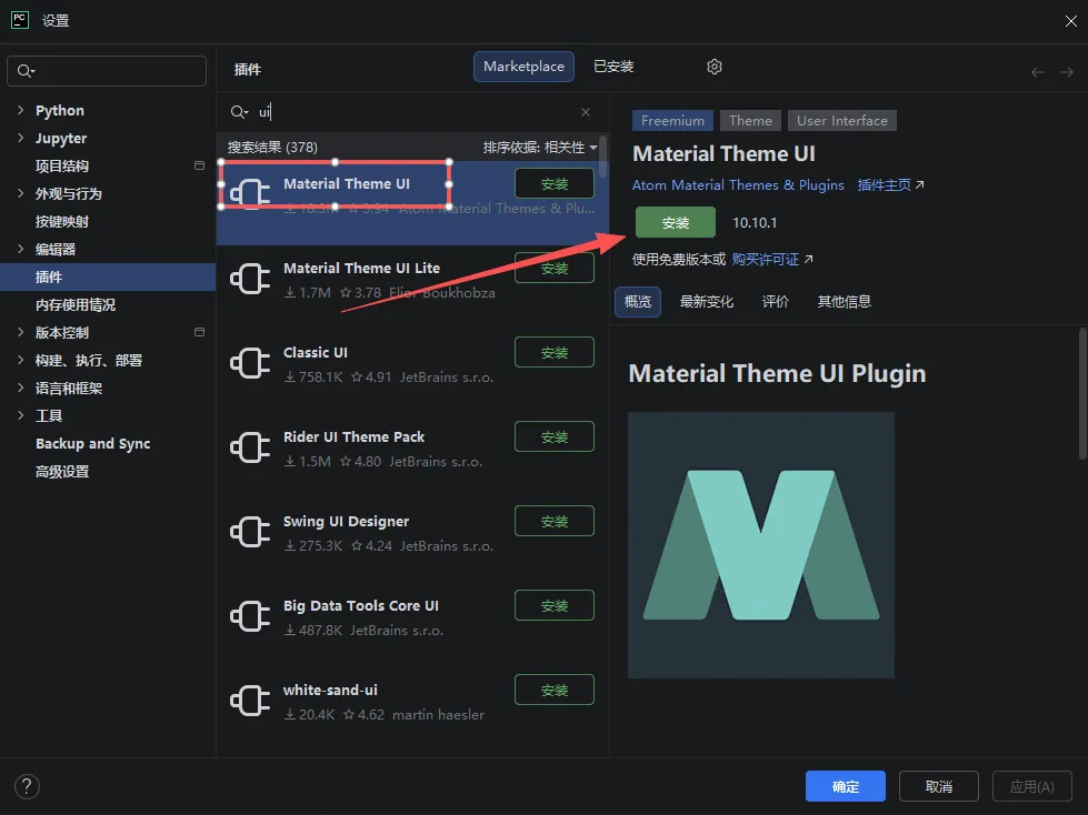 还是找到设置里面的插件,然后在这个搜索栏里面搜索UI,第一个插件认准他的图标是个“M”。