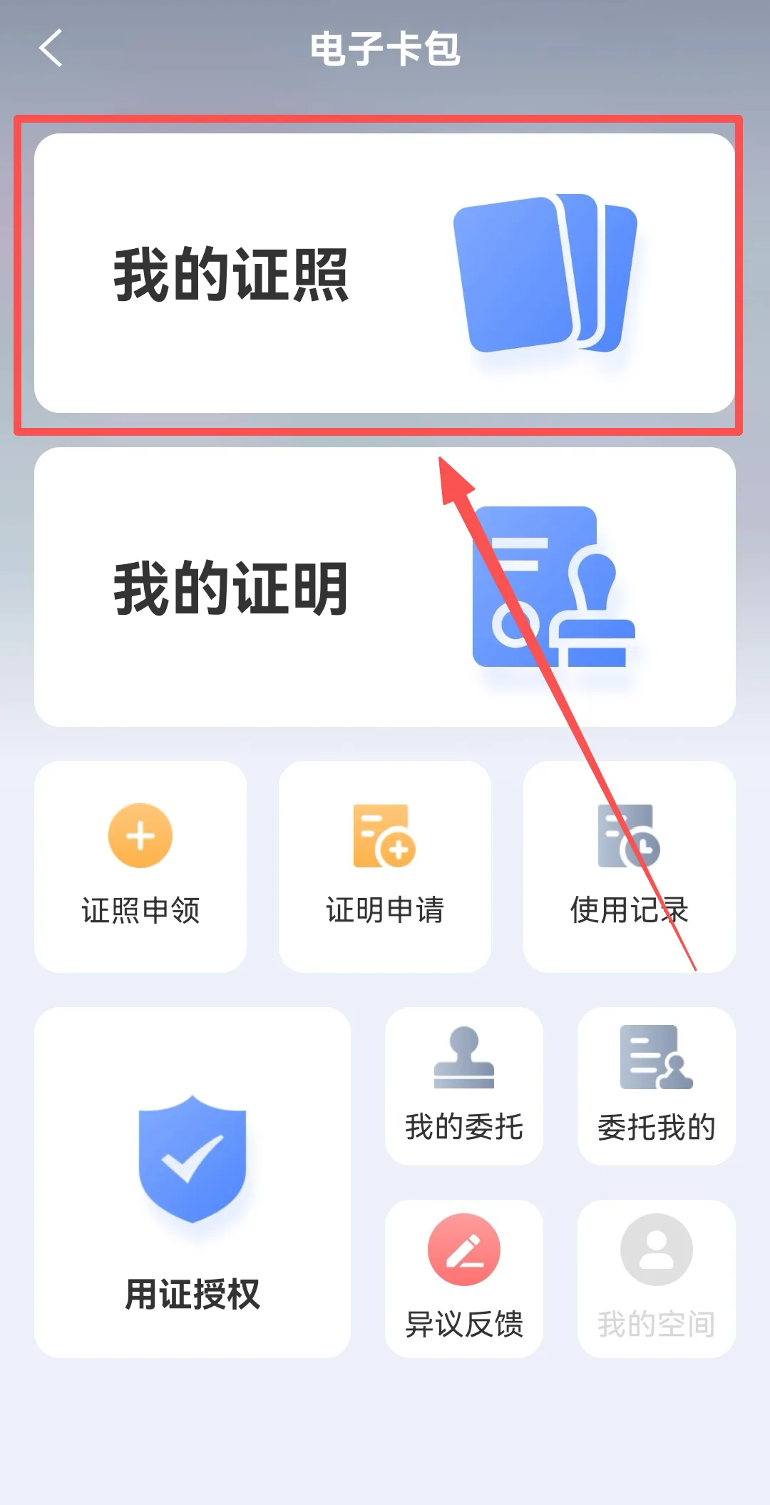 5、选择“我的证照”,申领“电子证照——居民身份证”,申领成功后,进入以下页面。