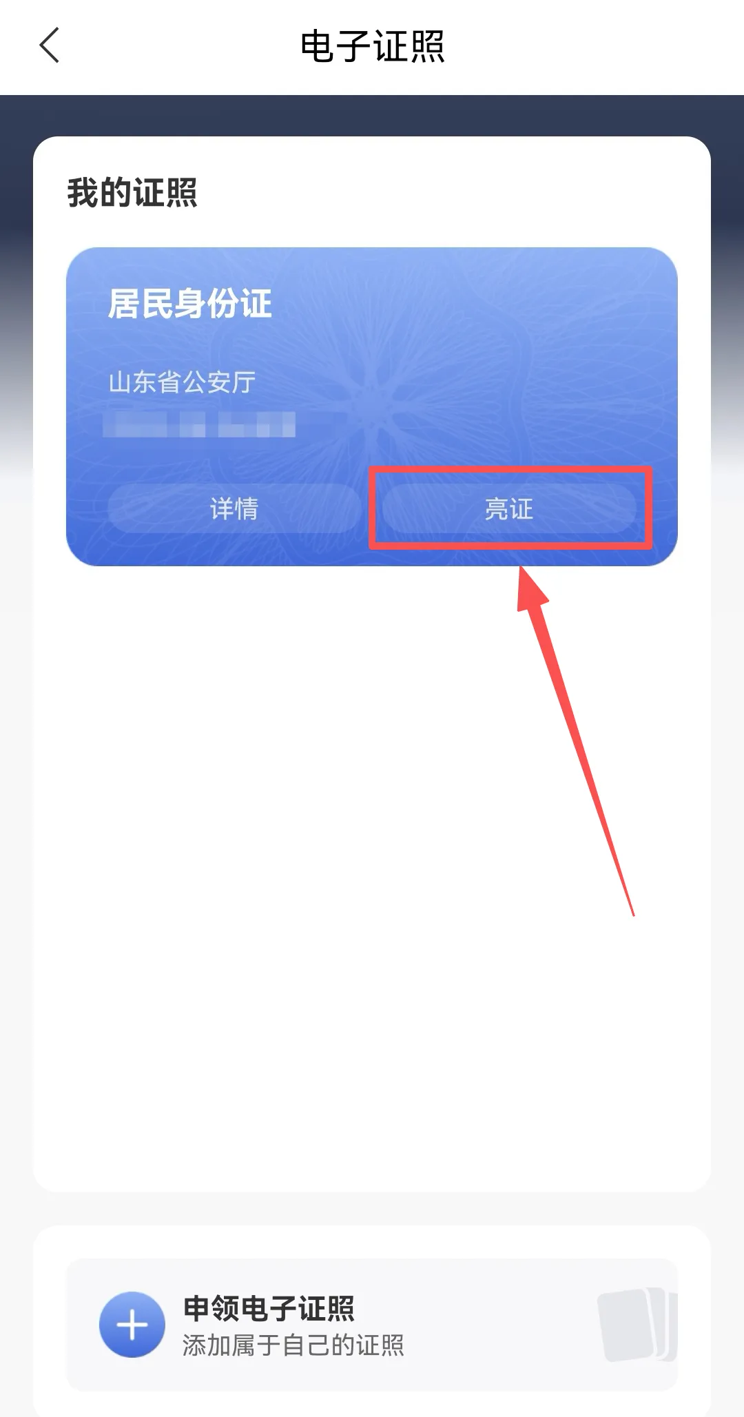 6、点击“亮证”,即可查看“中华人民共和国居民身份证电子证照”。