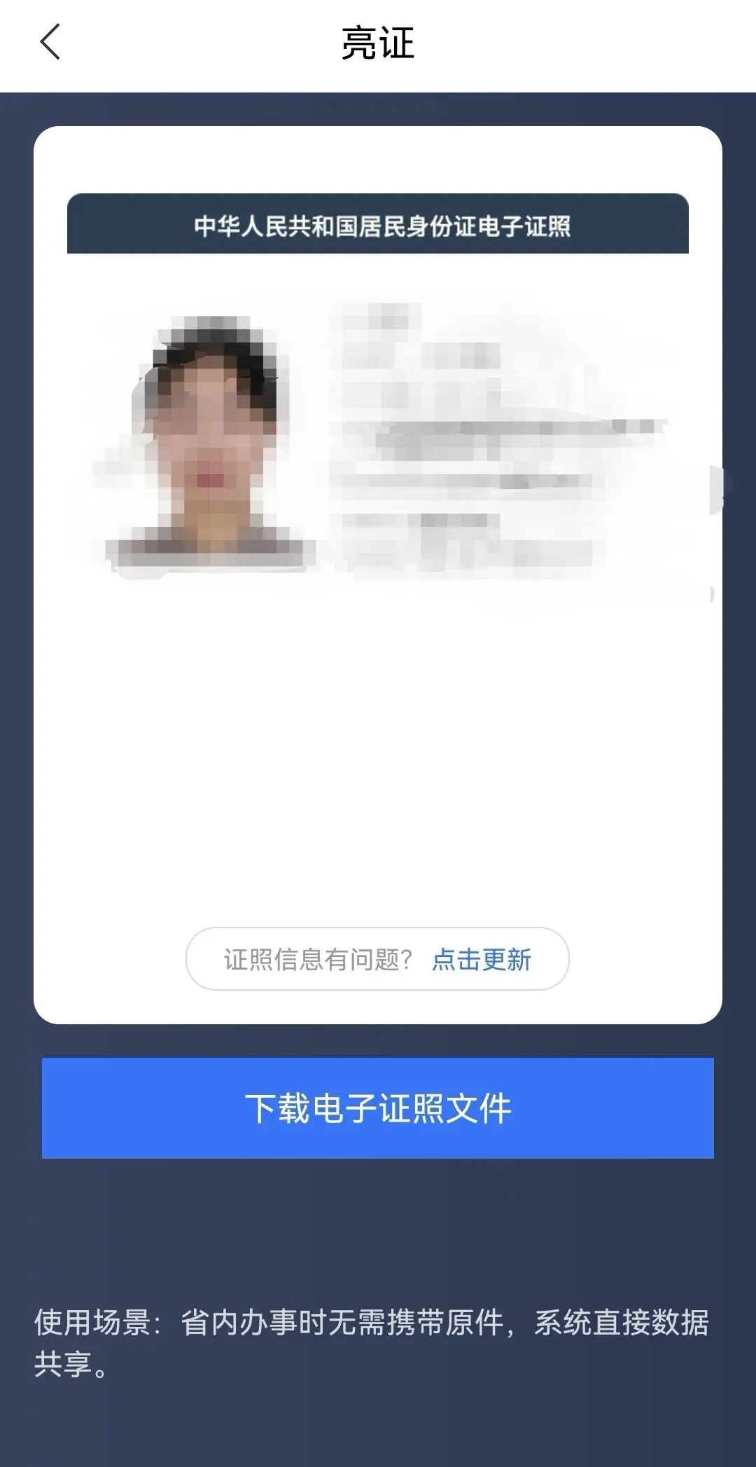 居民身份证电子证照自2021年11月以来,现已实现全省互通互认、共享共用,覆盖政务服务领域、行政执法领域、社会生活领域等多个场景。