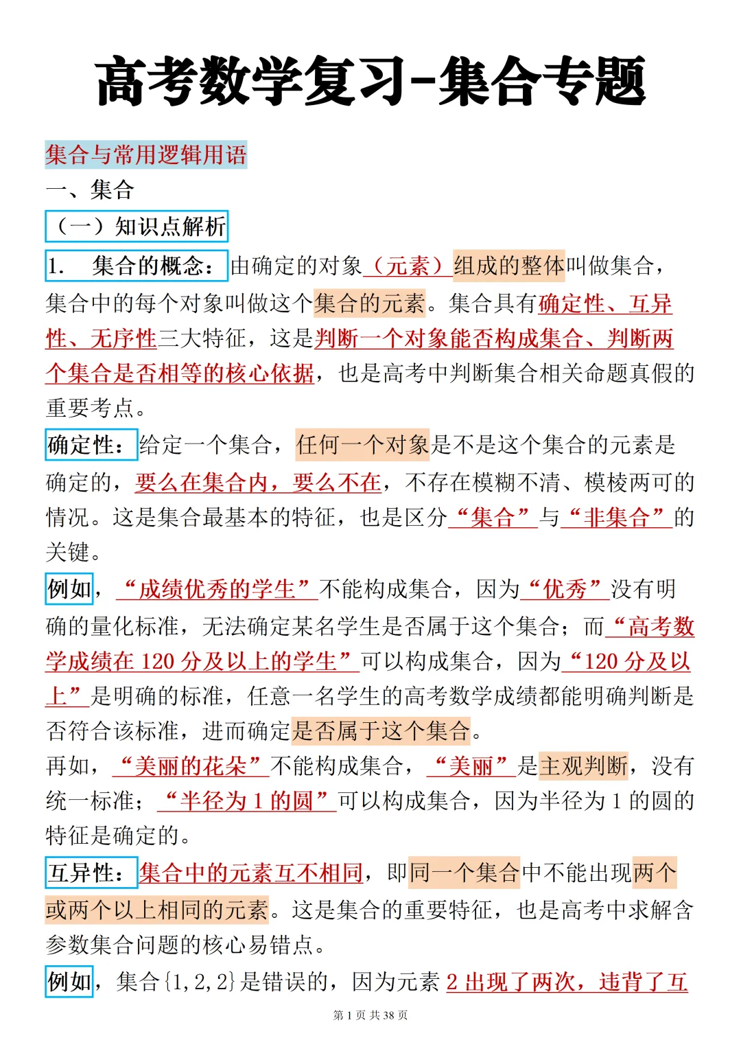 2026高考数学冲刺——集合专题篇,可打印,快收藏!