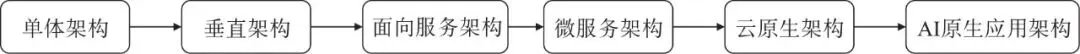 在技术迭代与业务需求复杂化的双重驱动下,软件架构正经历从“人工构建”到“智能涌现”的根本性转变。如图1所示,传统软件架构以代码为核心载体,开发者依托C++、Java等编程语言,通过设计函数、类与模块间的调用关系,构建出单体架构、垂直架构、面向服务架构(Service-Oriented Architecture,SOA)[1]或微服务架构[2]等。在此模式下,软件能力严格受限于预设逻辑,尽管云原生技术[3-4]的兴起提升了其弹性与可扩展性,但其本质仍属“规则驱动”范畴。开发者仍需投入大量精力处理底层技术细节和业务逻辑,架构复杂度也随业务规模扩张而持续攀升。
