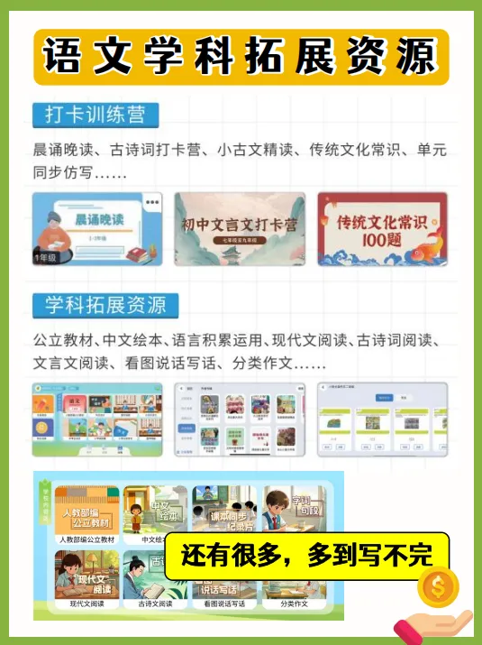 从公立教材同步到学科拓展(绘本、纪录片、古诗词、文言文、作文等),资源多到用不完!