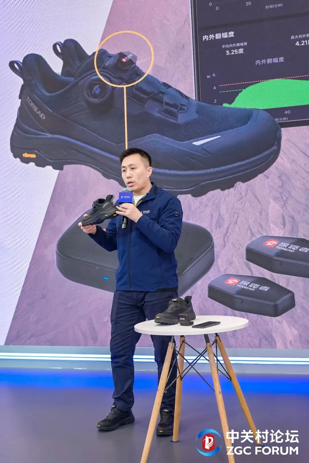 在新产品发布环节,探路者第二代智能运动外骨骼和智能鞋亮相。