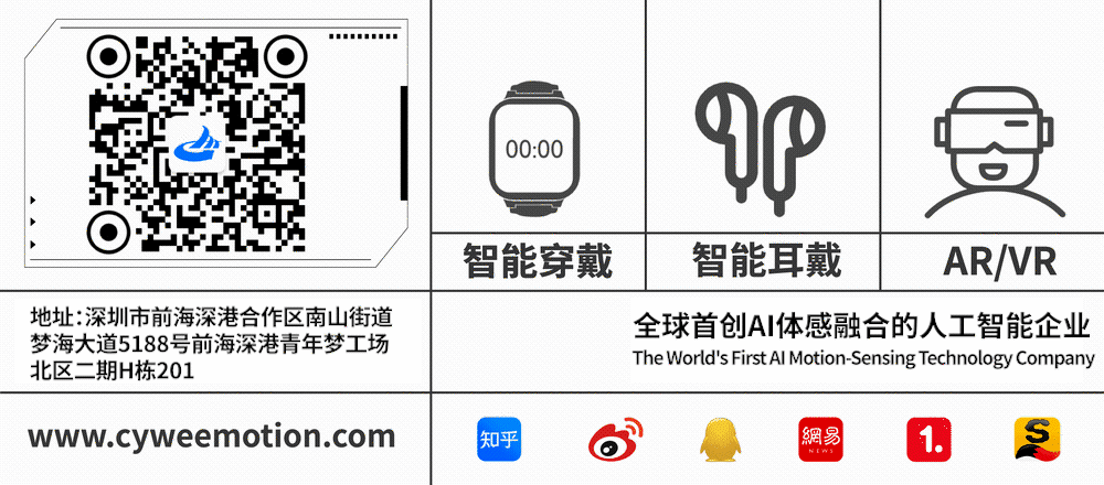 CyweeMotion(咸兑科技)是一家专注于AI Motion(人工智能体感)技术的高科技公司,长期深耕动作与运动监测领域。公司基于自研的AI Motion算法模型,构建了覆盖动作识别、计步与行为识别、专项运动监测、运动效果分析、健康与睡眠监测、步态分析、定位与轨迹追踪、3D空间音频头部追踪及头部交互解决方案。相关技术已广泛应用于智能腕戴、运动传感器、智能耳机、智能戒指及智能眼镜等终端产品。合作品牌覆盖全球头部厂商,包括:Xiaomi、HONOR、Nothing、imoo、Transsion、Motorola、Sharp、BoAt、Kospet、Shokz、EDIFIER、Cleer等。