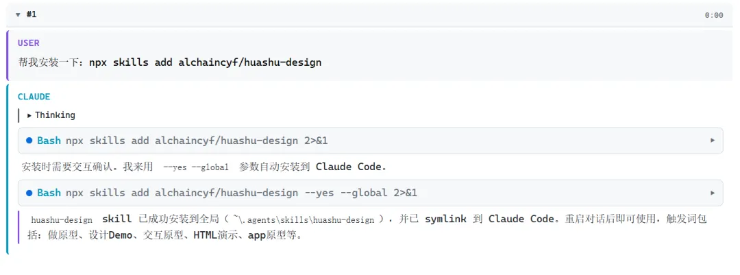 huashu-design 是一个跑在 Claude Code 里的设计 skill(技能包)。