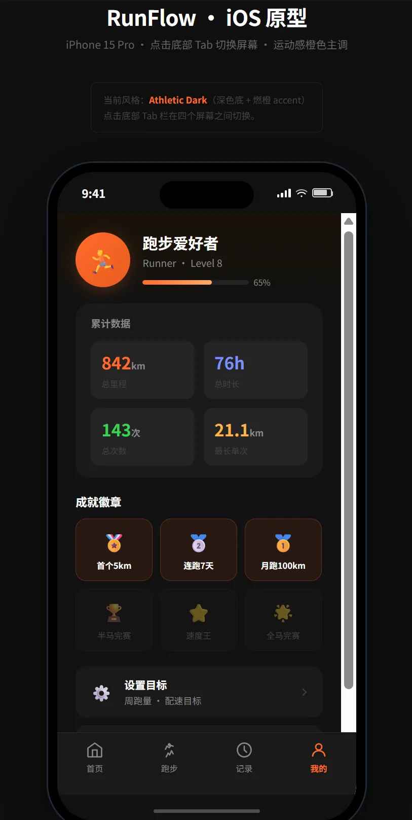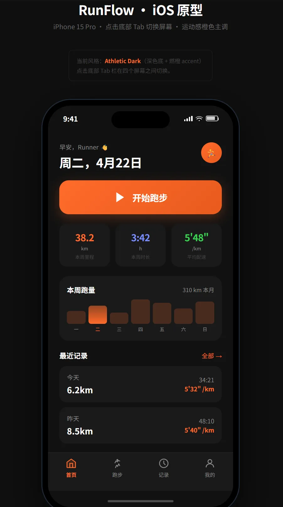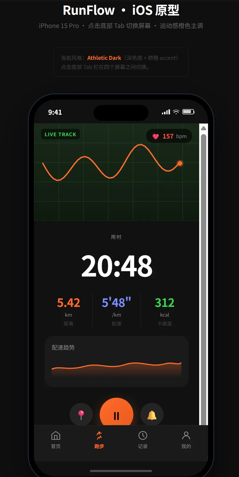 做一个跑步 App 的 iOS 原型: