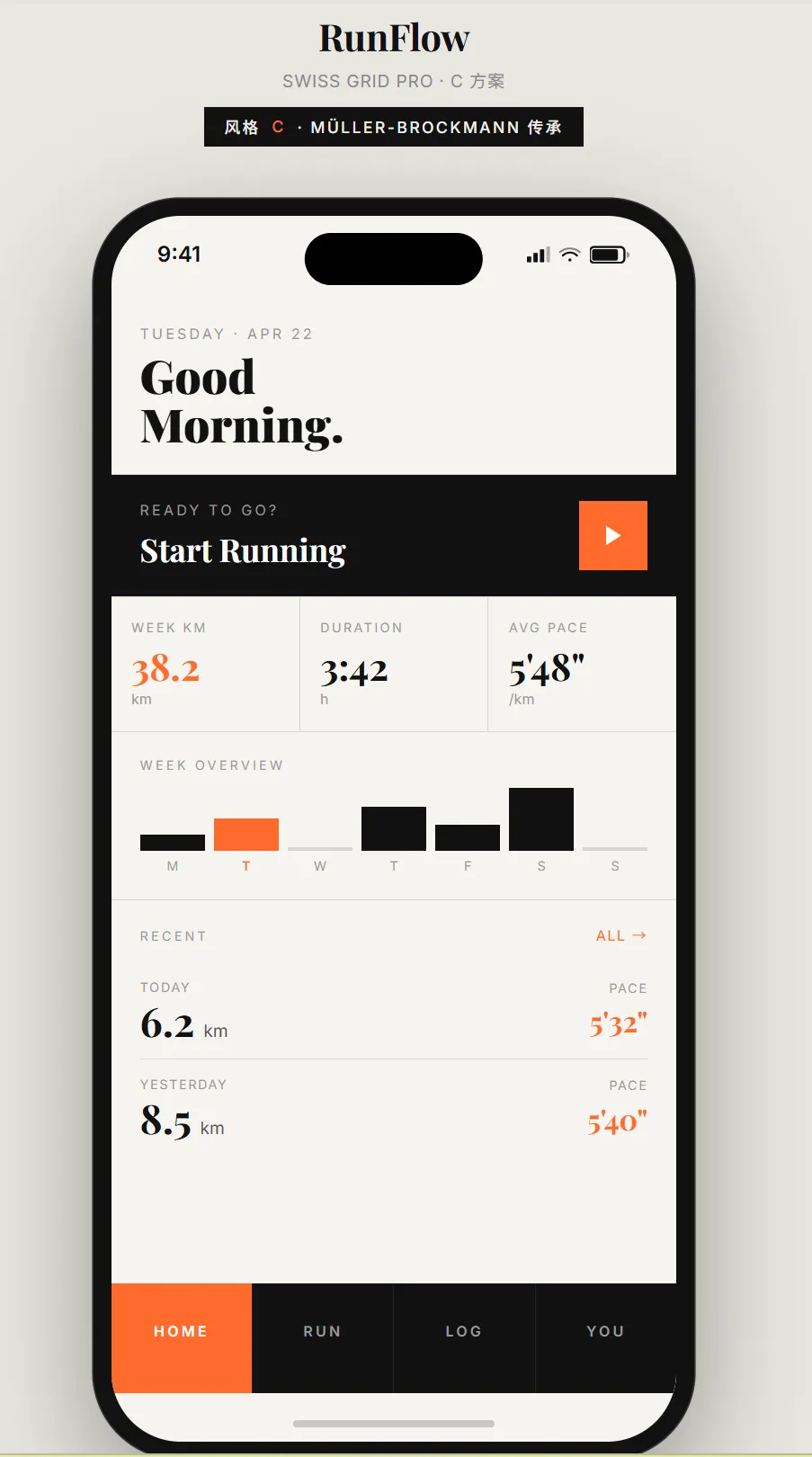 • 3 个不同风格方向的 Demo(极简白、运动橙、暗黑科技感……) -