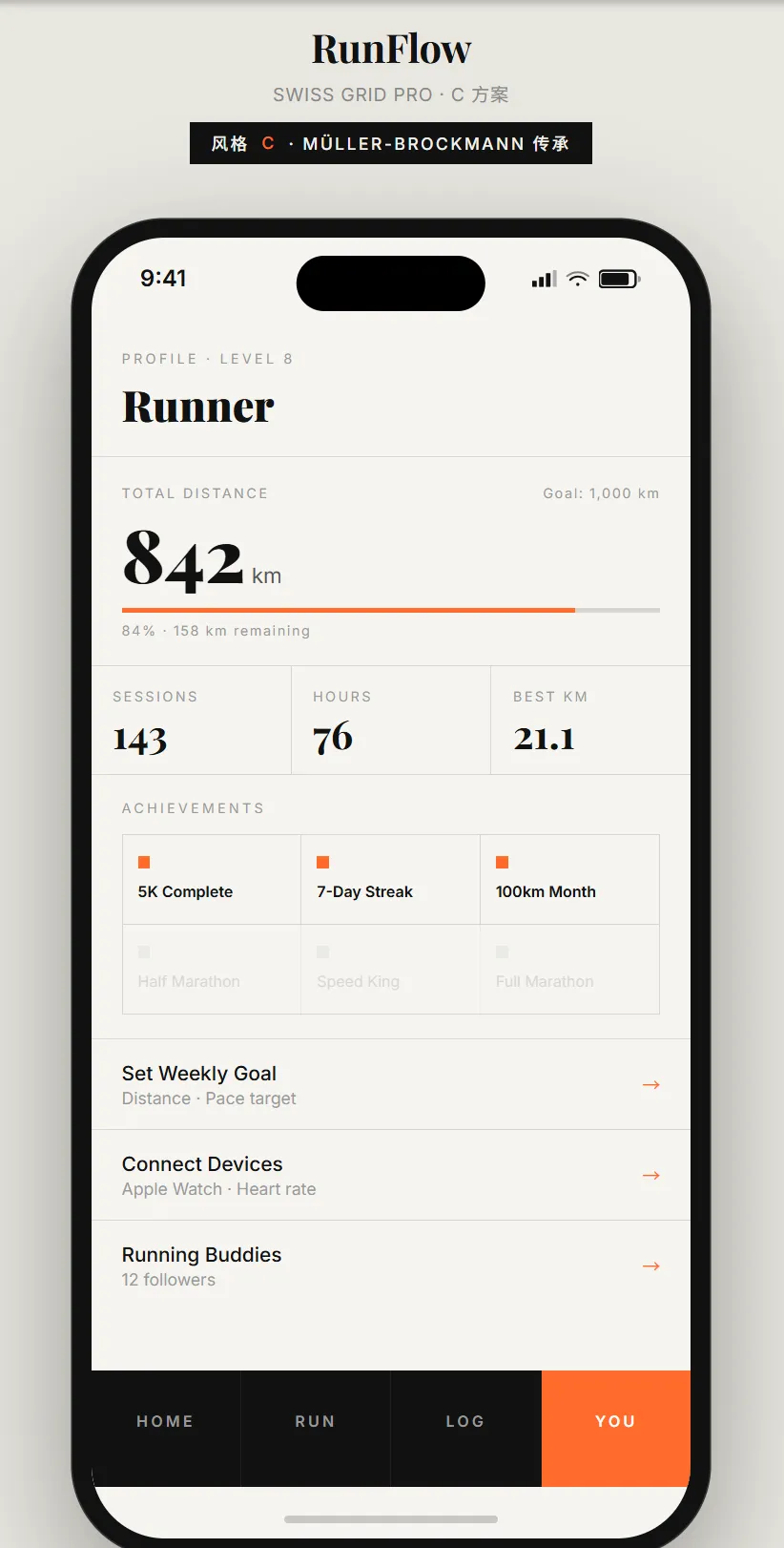 我选了 A 方案 Athletic Dark(深色底+燃橙),出来的 4 个屏幕长这样: