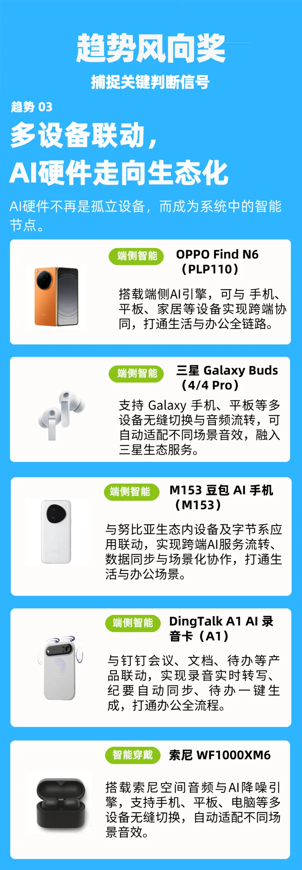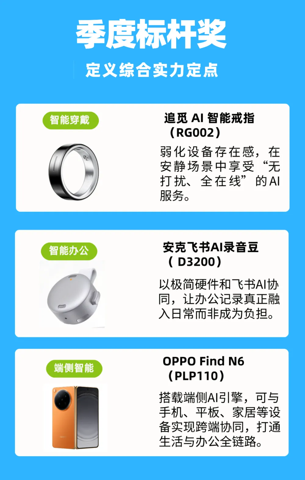 趋势风向奖告诉我们“该看什么方向”,而季度标杆奖则回答“这个方向里谁最强”。本季AI硬件的标杆产品,一次看全。