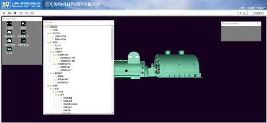 本软件是一个模拟600MW同步发电机的综合性实验。实验内容包括:同步发电机的三维结构认知(模型拆解),同步发电机的并网实验,同步发电机并联运行后的有功功率与无功功率的调节实验,同步发电机的V形曲线的绘制,同步发电机的外特性、调节特性、空载特性实验。
