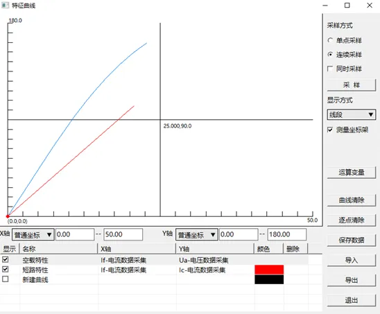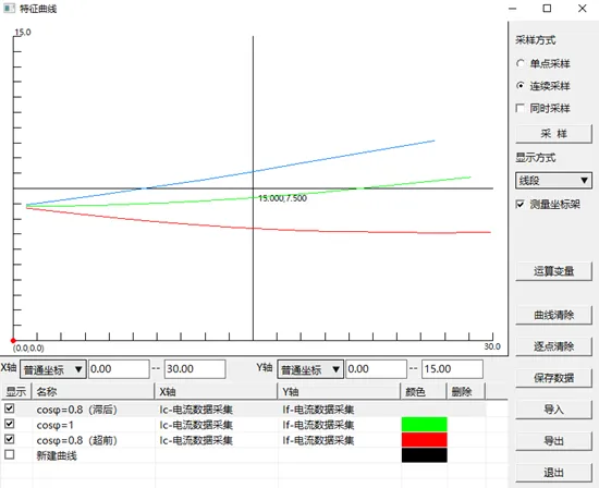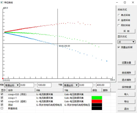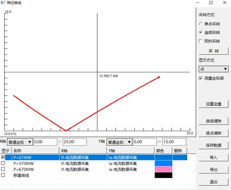 提供特征曲线工具,可描绘出不同电气量之间的变化关系,电气量用户可自行选择