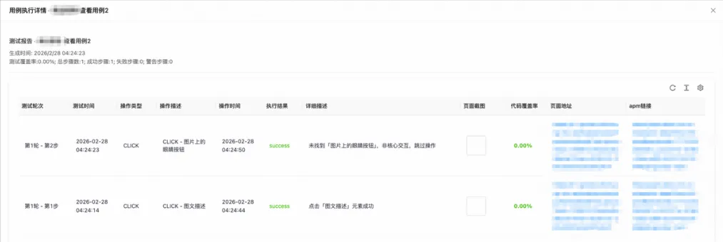 结果记录:每一步执行后,记录成功/失败状态、失败时的错误信息、当前页面截图以及单步代码覆盖率数据。 |