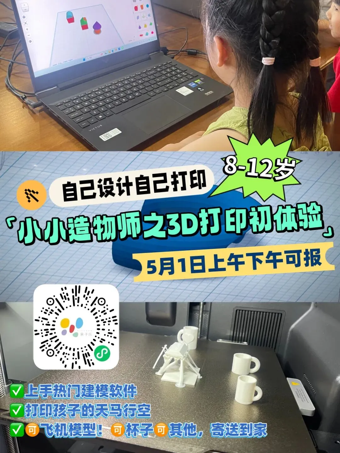 【5.1上下午】能做就能打!上手建模软件,用3D打印让创意大爆炸!飞机模型/火箭造型/笔筒,还能寄送到家