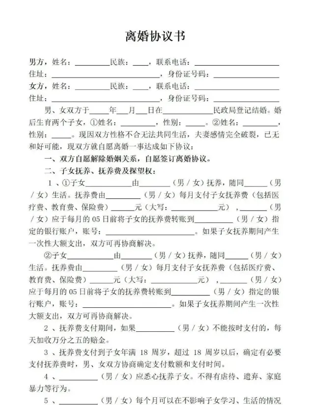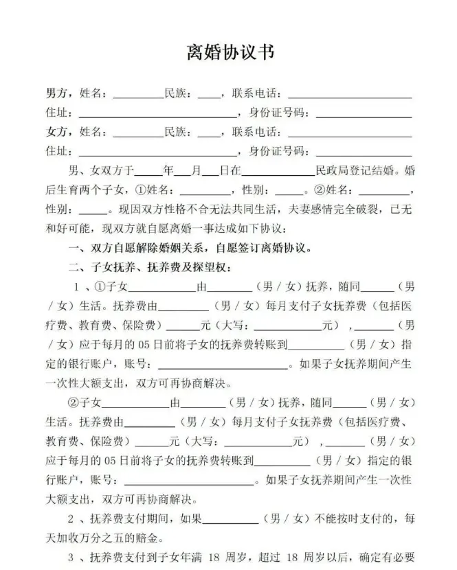 2026年最新离婚协议书(word版可编辑)可打印(高清PDF可下载)