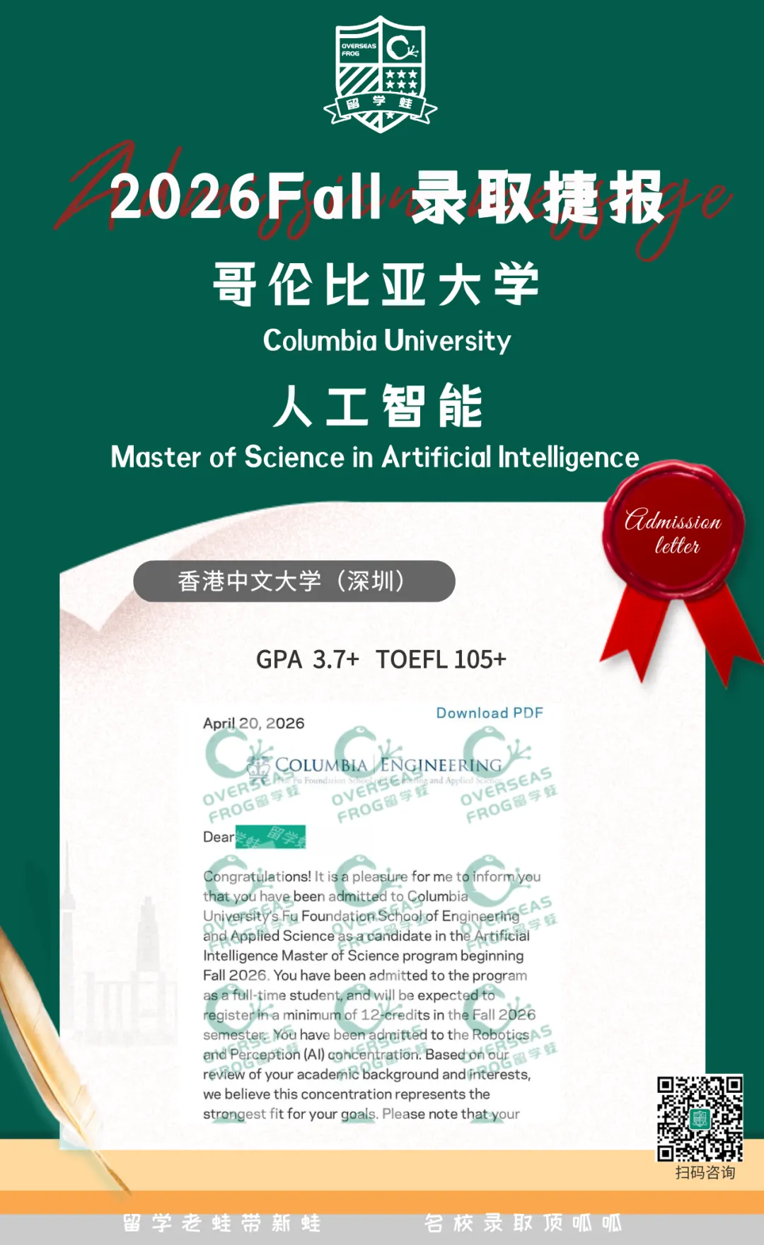 26Fall | 第三枚哥大AI offer!港中深同学拿下哥大【人工智能】硕士offer!