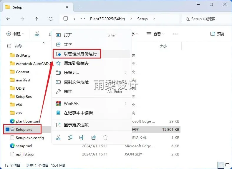 3.右键【Setup.exe】选择【以管理员身份运行】