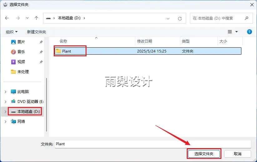 6.选择【D盘】,新建文件夹(名称不能是中文),点击【选择文件夹】