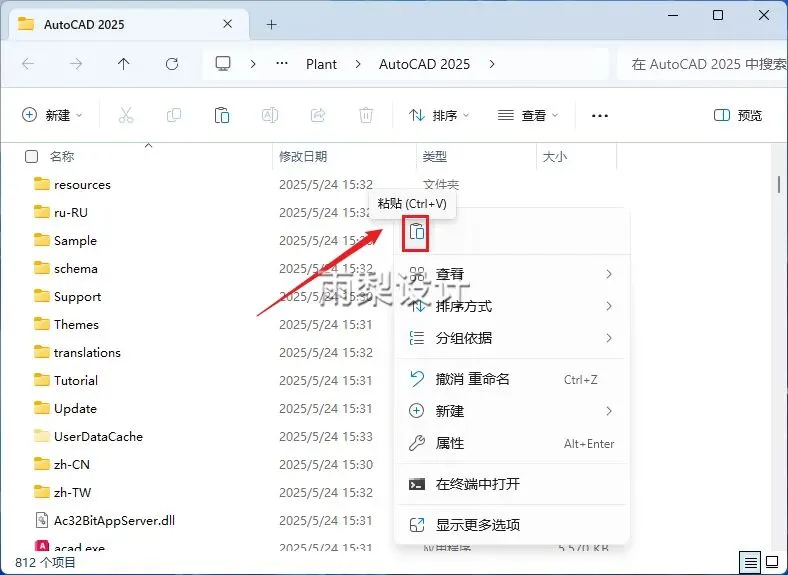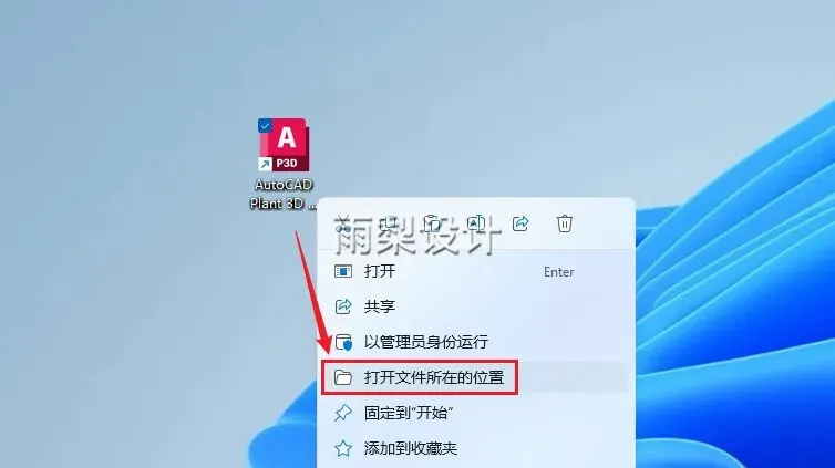 12.右键【AutoCAD Plant 3D 2025】选择【打开文件所在的位置】