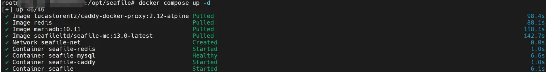 /opt/seafile# docker compose up -d[+] up 5/5! Image seafileltd/seafile-mc:13.0-latest Interrupted 0.0s✘ Image seafileltd/sdoc-server:2.0-latest Error failed to resolve reference "docker.io/seafileltd/sdoc-server:2.0-latest": fai... 0.0s! Image redis Interrupted 0.0s! Image mariadb:10.11 Interrupted 0.0s! Image lucaslorentz/caddy-docker-proxy:2.12-alpine Interrupted 0.0sError response from daemon: failed to resolve reference "docker.io/seafileltd/sdoc-server:2.0-latest": failed to do request: Head "https://registry-1.docker.io/v2/seafileltd/sdoc-server/manifests/2.0-latest": dial tcp 162.125.32.13:443: connect: connection refused