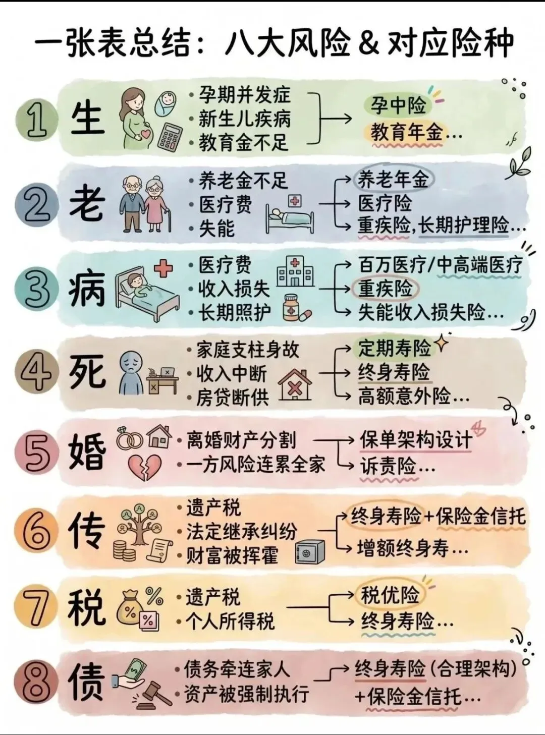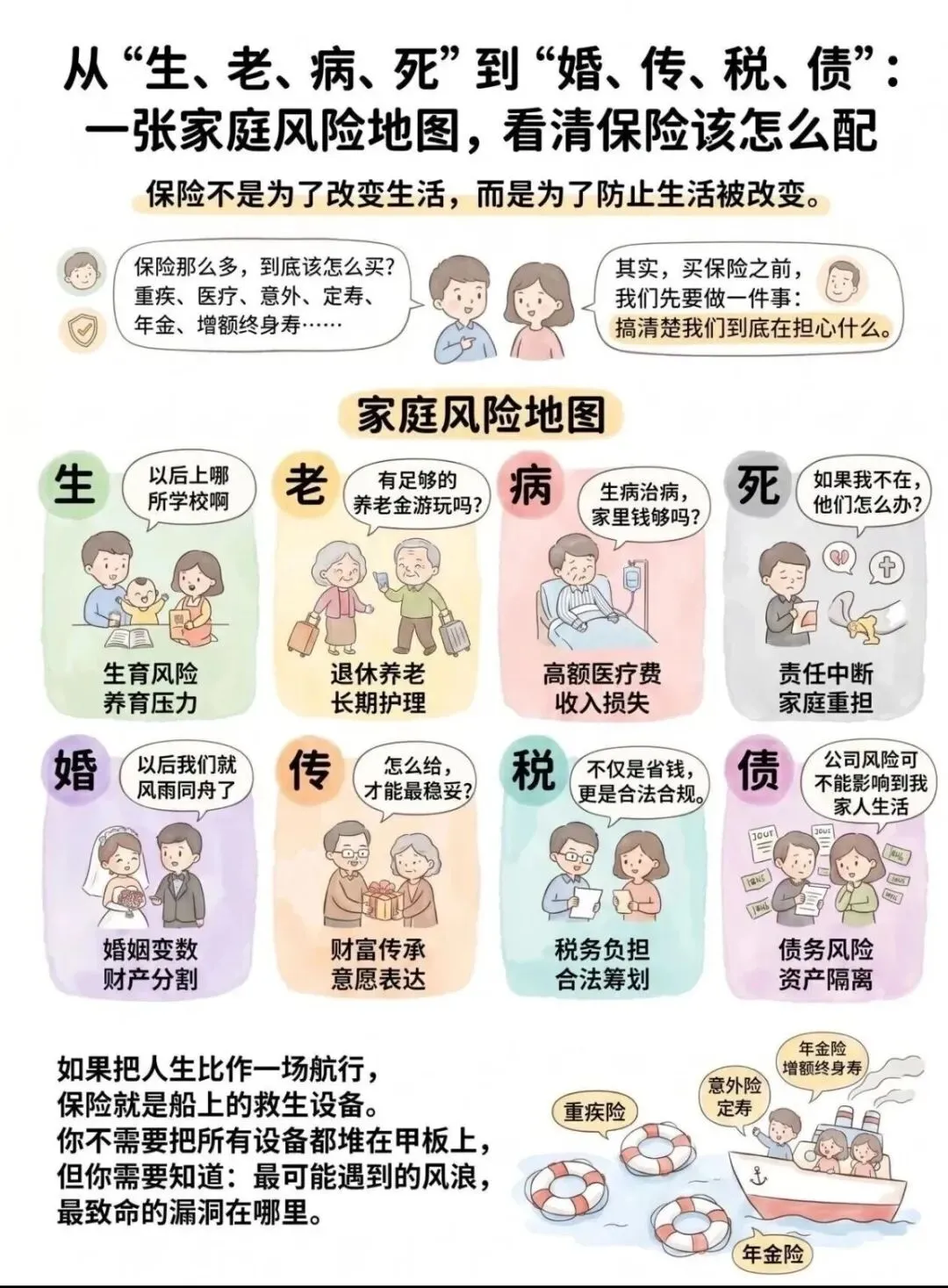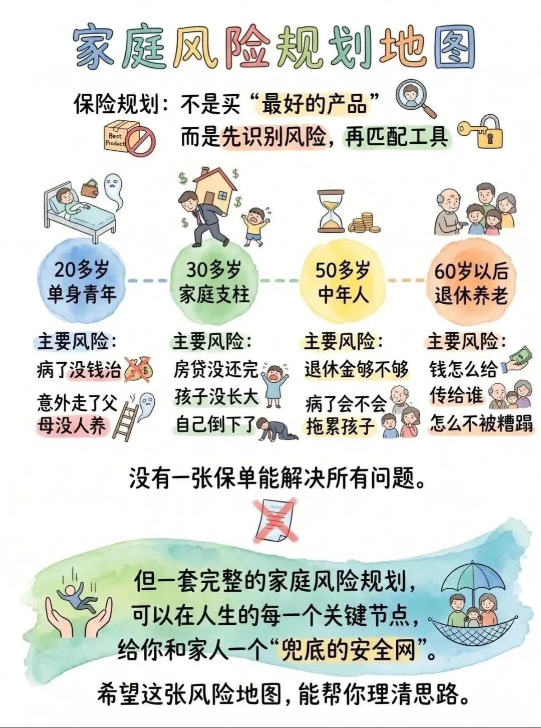 一张地图,教你轻松搞定全家风险规划从生老病死到婚传税债,每个人生阶段都有不同的保险解决方案