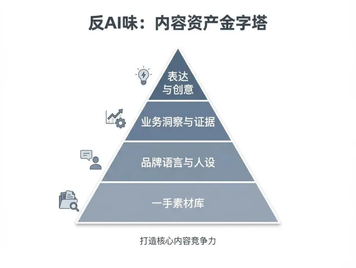 所谓“AI味”,很多时候不是语言问题,而是信息结构问题:没有一手素材、没有品牌语气、没有证据与洞察,AI只能用通用语料去填空,自然像“模板作文”。
