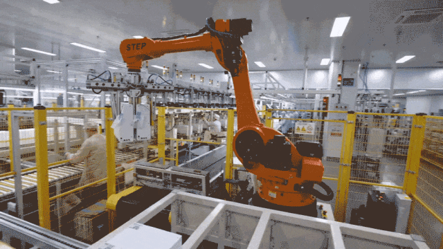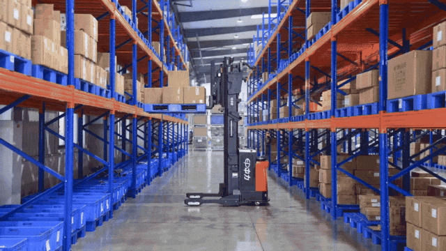 2026年3月16日,在江苏江阴—靖江工业园区江苏中力叉车有限公司仓储区,智能堆高式机器人对货物进行堆垛。新华社发(顾继红 摄)动态图片由AI辅助生成